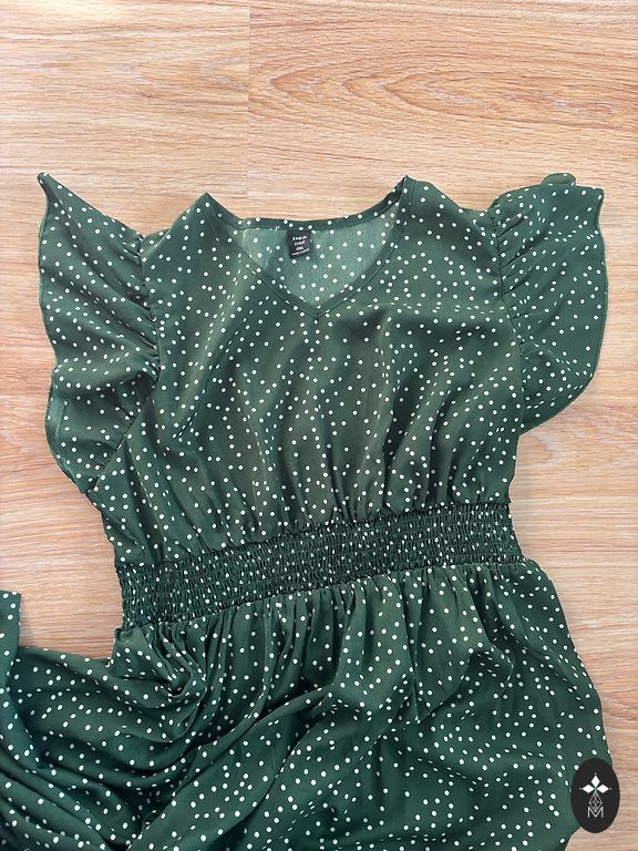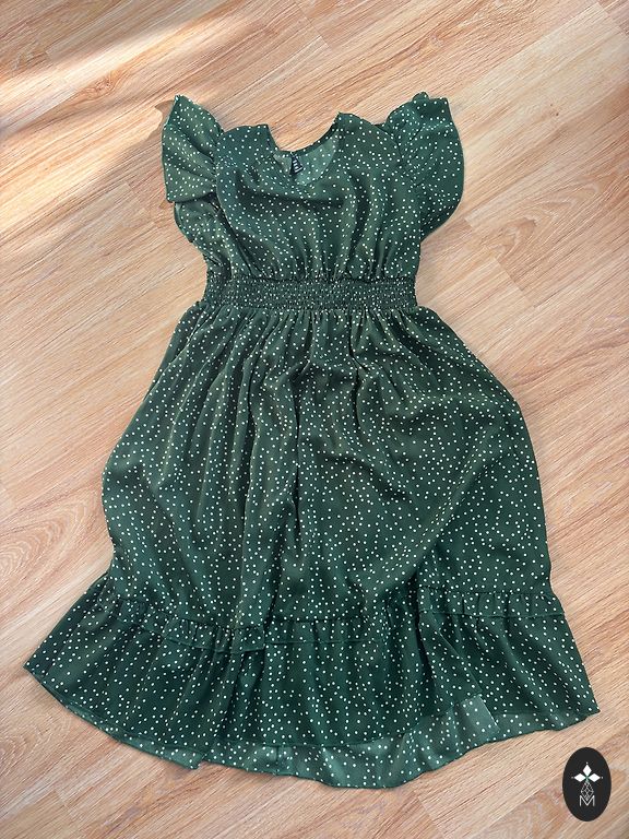 Green warm knitted dress.