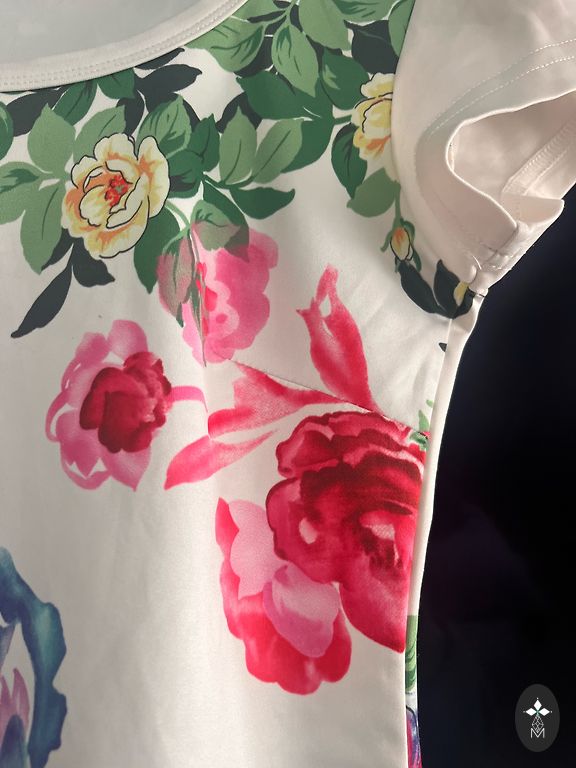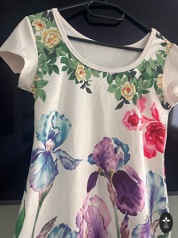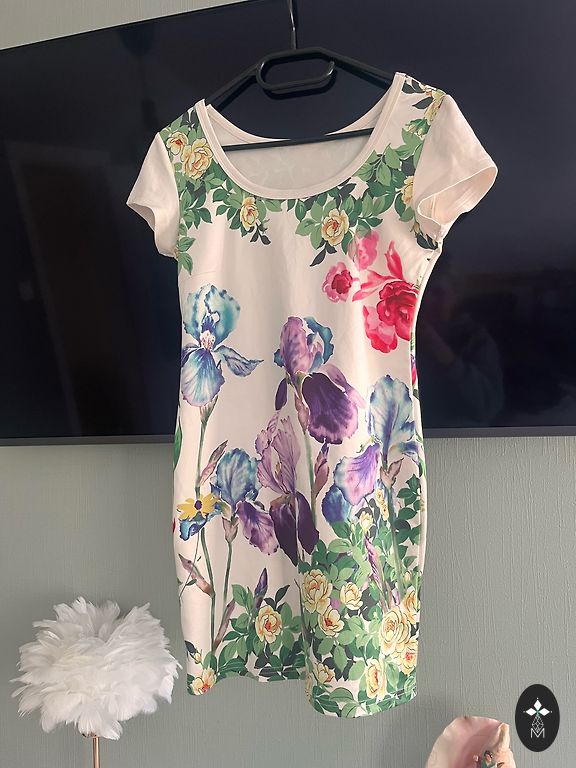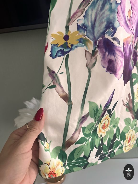 With glitter. The dress lifts the mood because when you put it on, you'll feel slimmer. The middle of the dress is oversized, but the sleeves and top are fitted. From shoulder to bottom, it is 82cm.