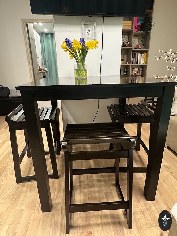 Natūralaus medžio stalas, tvirtas, gražus, pagamintas su meile savo rankomis. Yra nedideli defektai, būdingi natūraliam medžiui, tačiau naudojimui netrukdo, jei norite, galite nudažyti ir bus kaip naujas☺️