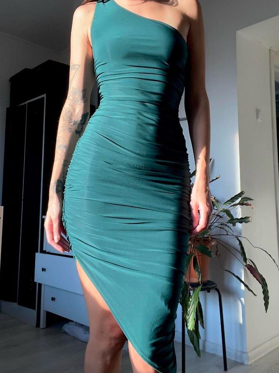 The dress is practically in new condition. No defects. High quality. Has lining. Omniva +1.85. Not meeting.