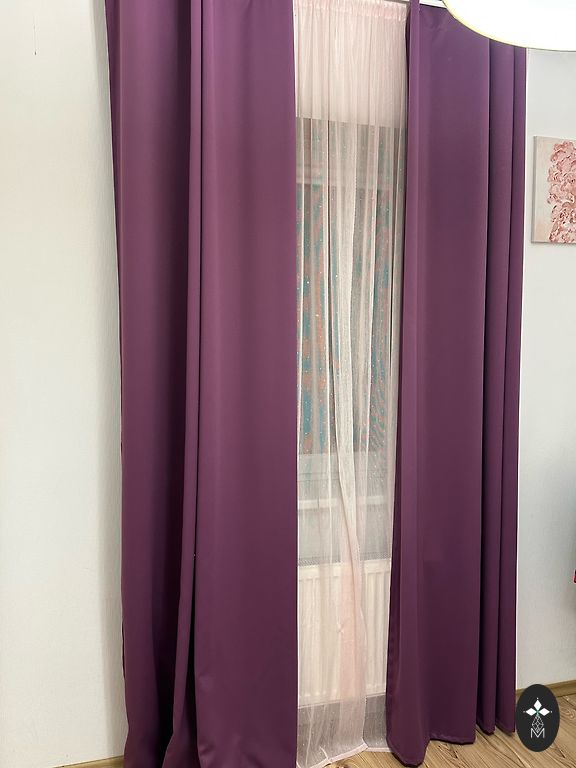 2 uz stangas uzvelkami dienas aizkari. Viena aizkara platums-1.23 m, garums-2.20 m. Cena par abiem.