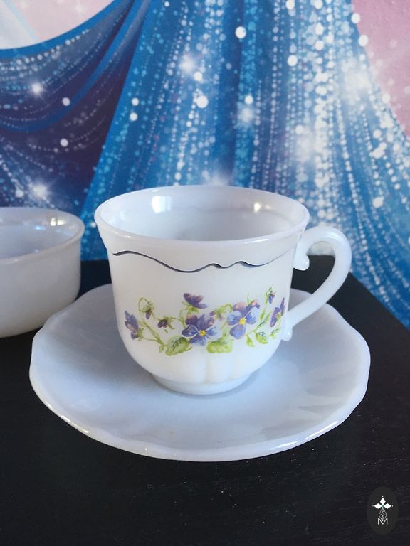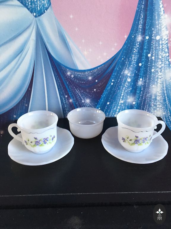 Diametrs šķīvītim 11cm, krūzītes augstums 4 cm, diametrs 7.3 cm