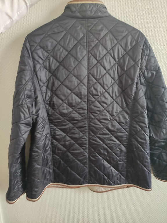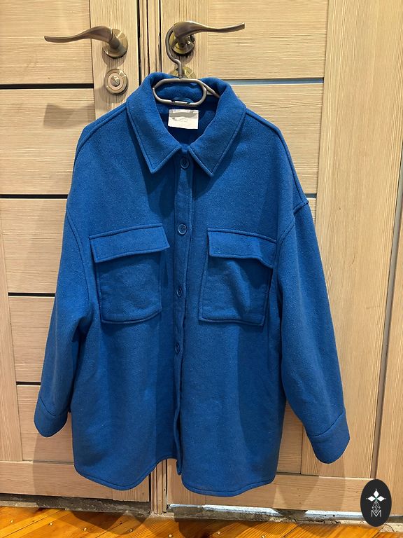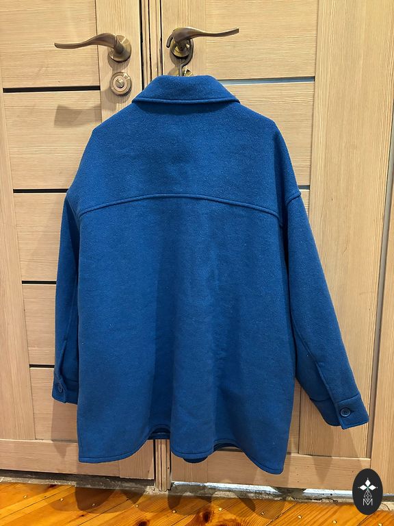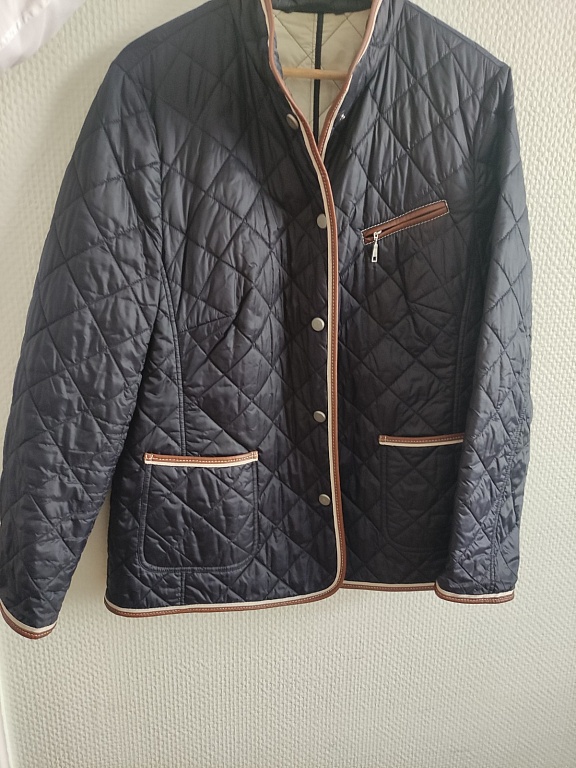 Темно-синяя куртка с хлопковой подкладкой. Высокое качество. Капюшон можно убрать в воротник. Подойдет для роста 167-175 см. Указан размер 40, но будет свободнее в размере M. L подойдет, если у вас худые руки и не очень большая грудь.