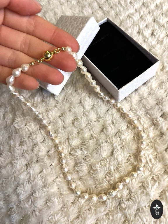 Pašdarināta🤍Taisīju pati no dabīgām upes pērlēm, var nēsāt divējādi.