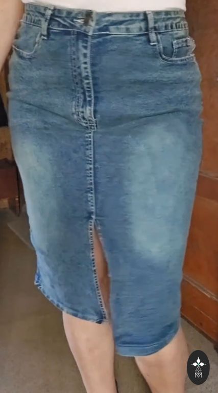 Juodos spalvos džinsinis sijonas iš tampraus audinio, su nedidele skeltuku priekyje... labai gera kokybė. Ilgis iki kelių. Tinka nuo l-xl.