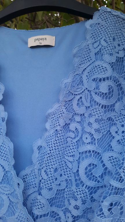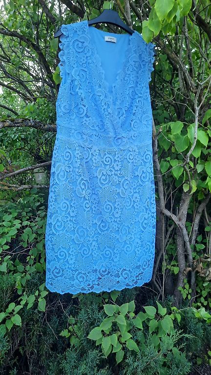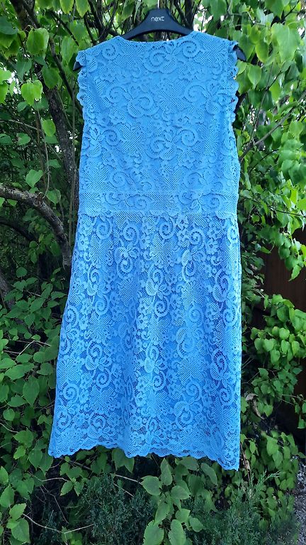 Tumesinine kleit, õmmeldud õmbleja juures, kantud ühe korra. Kleidi tagaosa tõmblukk, kleidi pikkus - 110 cm, rinnaümbermõõt - 94 cm, talje - 98 cm.