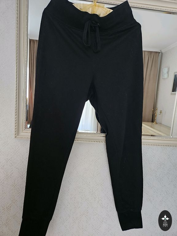 Размеры брюк - талия (без растяжения) 35x2 см, бедра 48x2 см, длина 94 см, внутренний шов 70 см