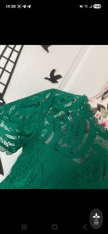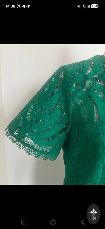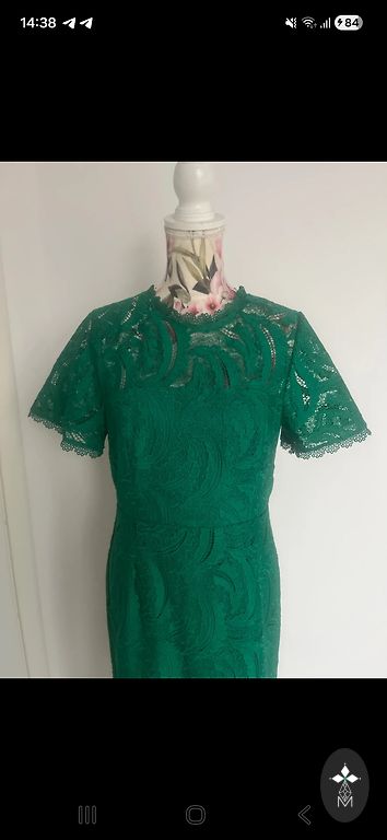 M/L suurus - hele roosa, viisakas kleit. Jäik kangas pits. Kantud vaid kaks korda. 1,76 pikkusel kleit lõpeb 10cm põlve all.