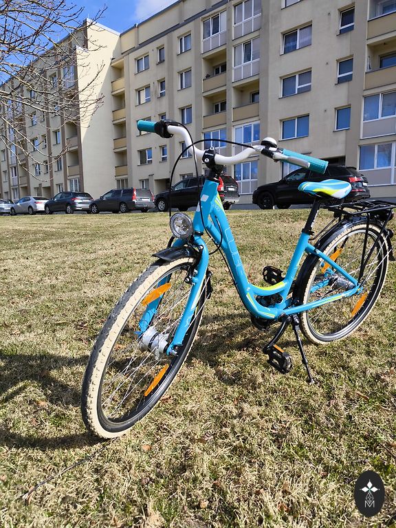 Vokietijoje pagamintas Biria dviratis. Mažai naudotas, puikios būklės. 20 colių ratai. Ką tik atlikta techninė priežiūra. Shimano Nexus pavarų perjungiklis, 3 pavaros stebulėje. Dinamo žibintai priekyje ir gale.