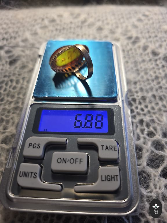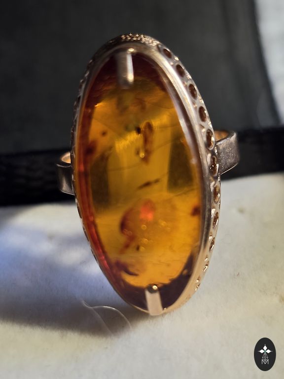 Baltijas dzintars ar kukainiem, zelts - 585 prove, svars - 5.73 gr.