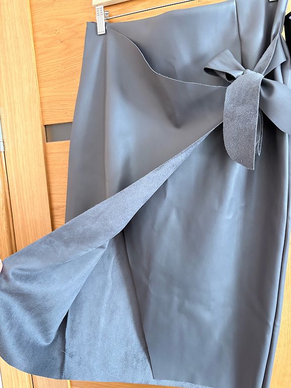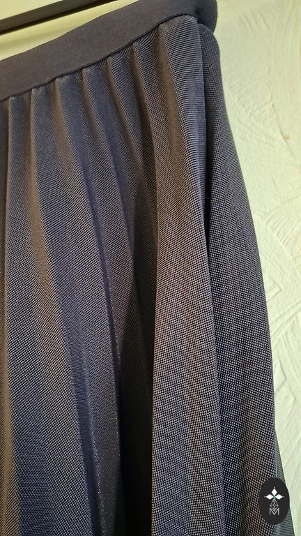 Sijonas su pamušalu. Plonas viršutinis audinys. Siūlės siūlai su švelniu blizgesiu. Galima pridėti diržą. Dydis 42. Diržo plotis 40 cm. Ilgis 58 cm.