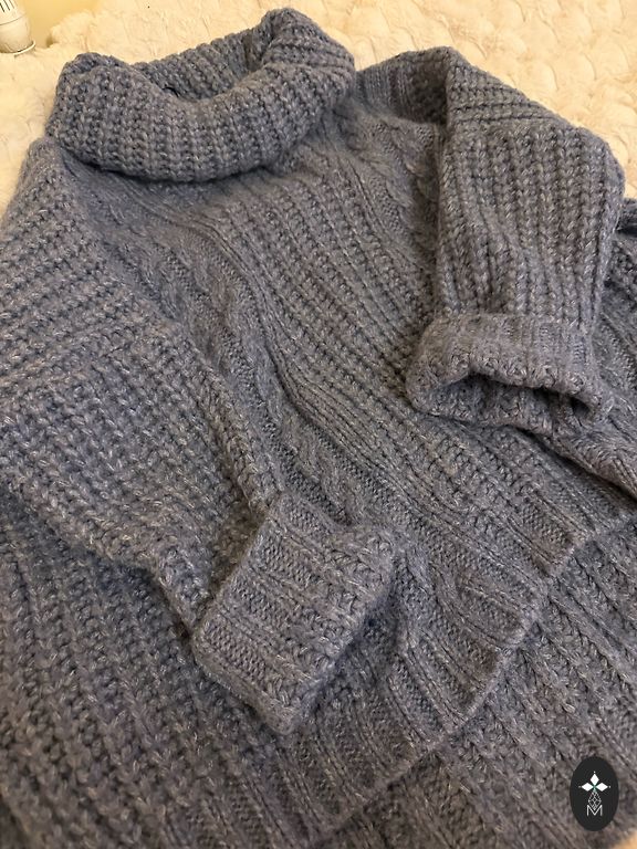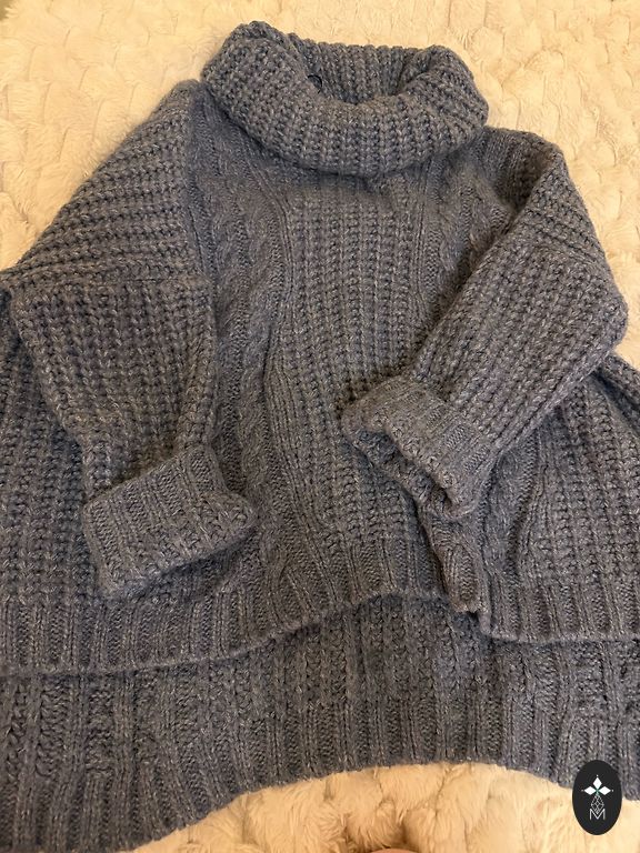 A thin yet warm wool sweater in royal blue. The size is 2, which is XS. Composition: 88% merino wool, 10% nylon, 2% spandex.
