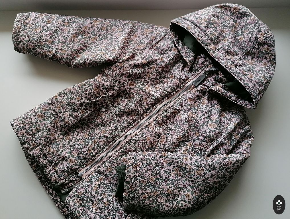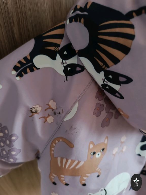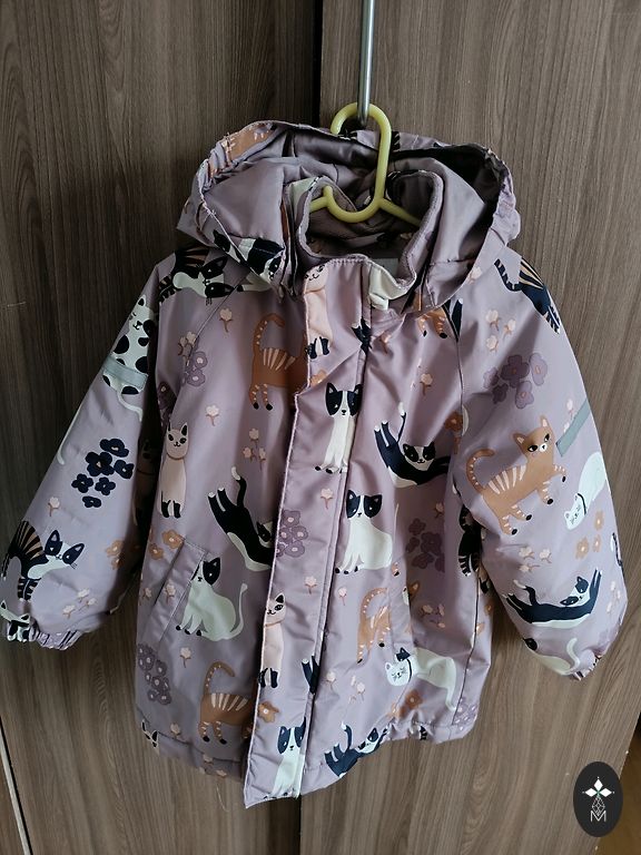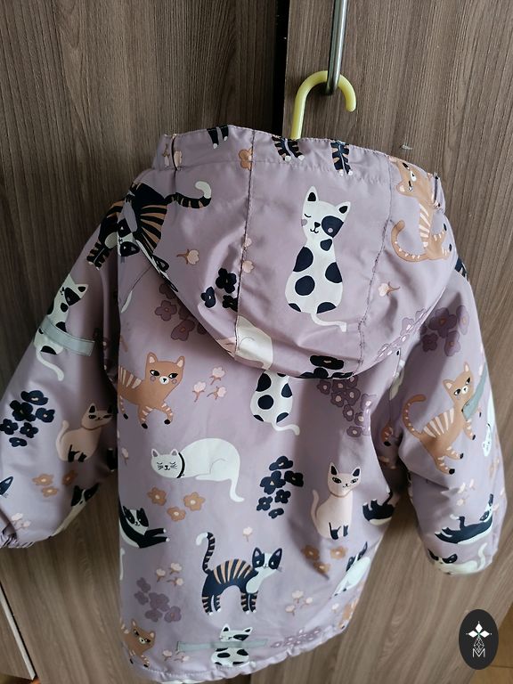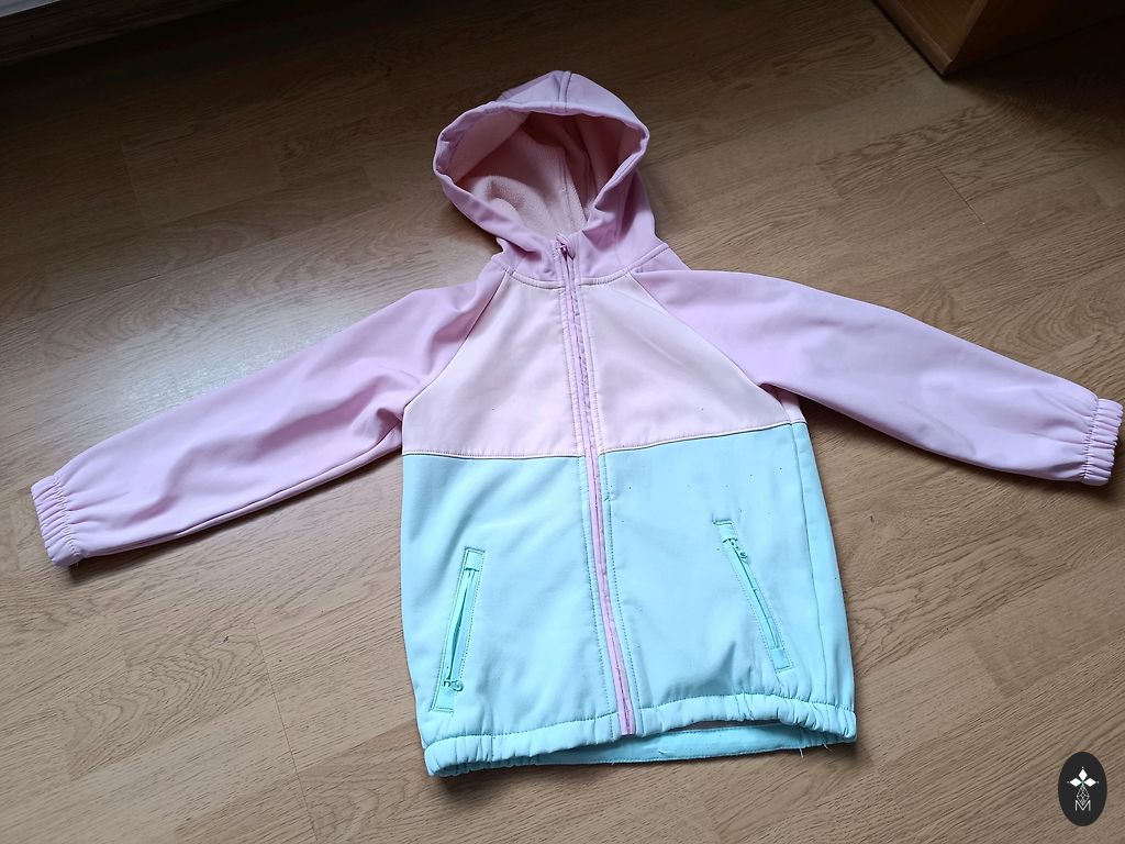 Vējjaciņu komplekts, izmērs 110. Raibajai jakai daži mazi pleķīši. Bet par cik raiba, tad baigi acīs nekrīt.