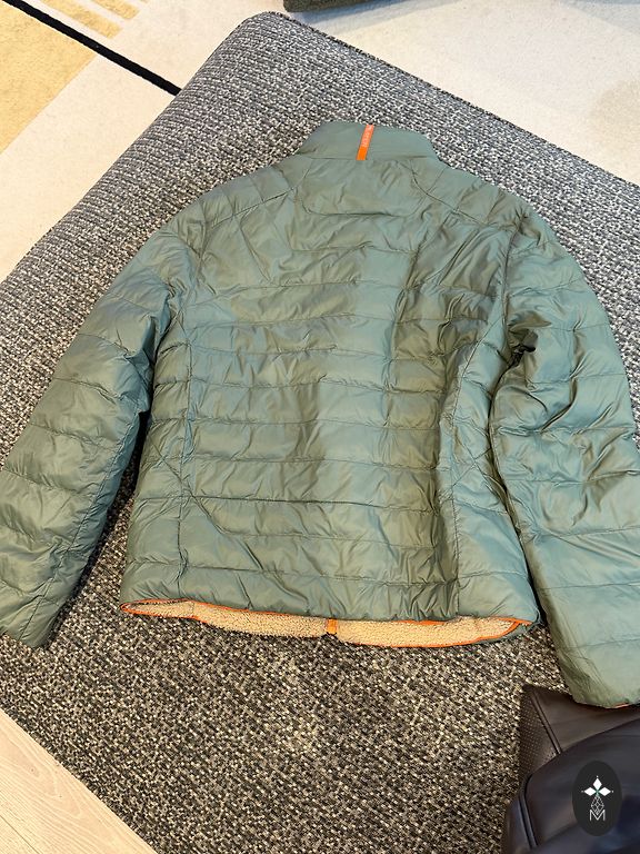 Ar hokeja kluba logo. Kvalitatīva, stilīga, silta ar stepējumu iekšā. Vilktavien kādas pāris x, ideālā stāvoklī. Izmērs derētu uz apm 160 augumu, norādīts pieauguš 46.izm.Garums - 73 cm, platums krūtīs (1/2) ~53 cm, gurnos (gumija)~44 cm.