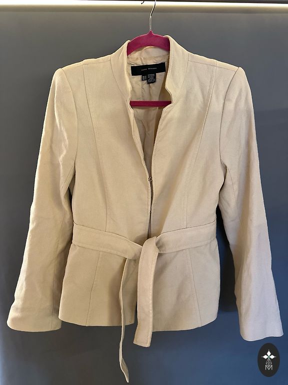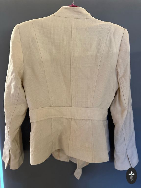 Aš jį nusipirkau Andele, bet niekada jo nedėvėjau. Labai graži spalva, minkštas lino audinys. Viduje pamušalas, ant pečių mažos pagalvėlės. Su kišenėmis.