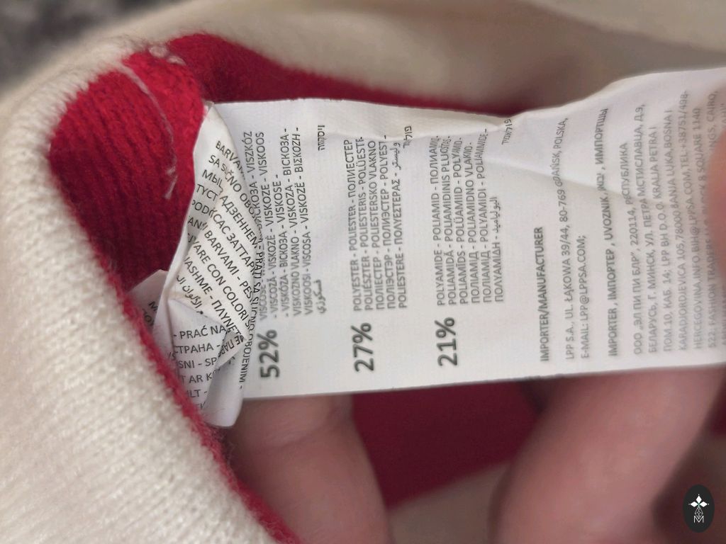 Materials: 45% akrils, 27% vilna,19% alpaka, 9% polister