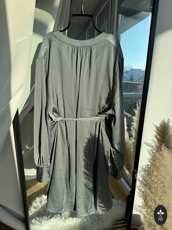 Suknelės ilgis – 102 cm, krūtinės apimtis – iki 107 cm, juosmens apimtis – iki 90 cm, klubų apimtis – 108 cm. Rankovių ilgis – 42 cm.
