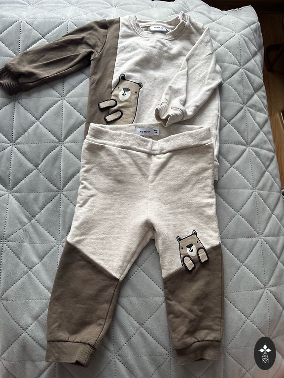 Suurus 12 a. Püksid: puusad 46 cm, pikkus 90 cm. Jakk: pikkus 54 cm, varruka pikkus 52 cm, laius kaenlaaluste vahel 49 cm.