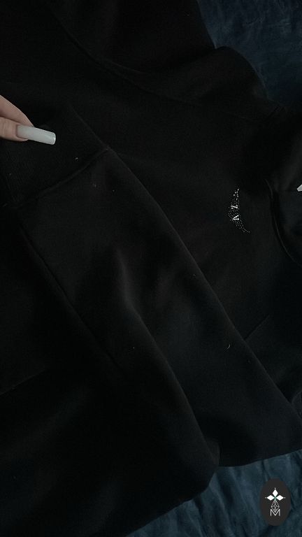 Uzvilku dažas reizes. Ar kapuci, sānos šķēlumi, tādēļ derēs arī M izmēram un domāju pat L izmēram. No iekšpuses ir arī siltinājums.