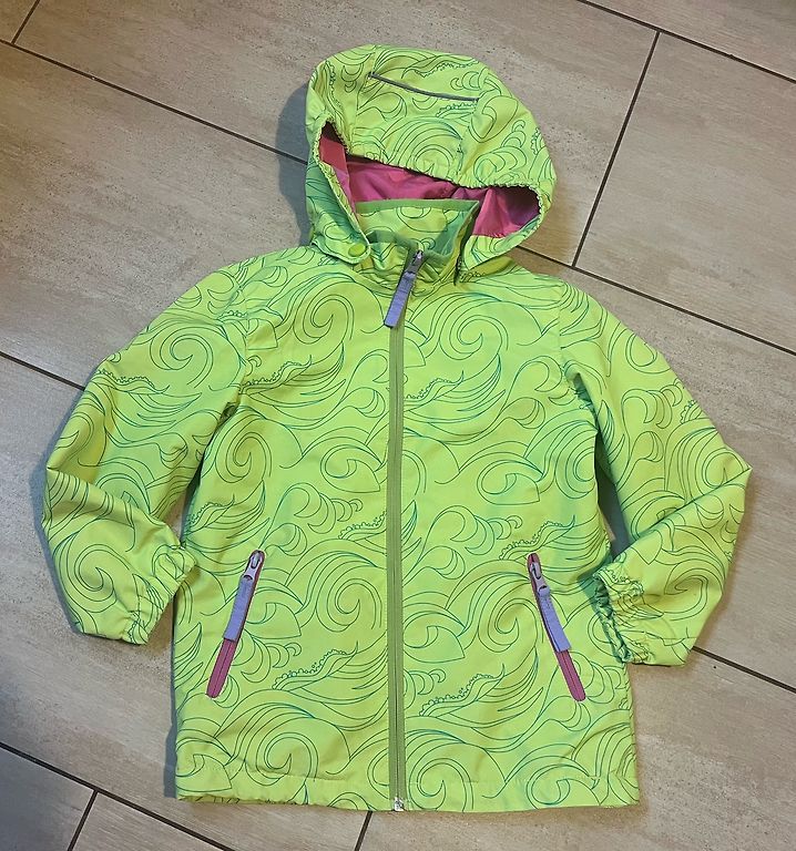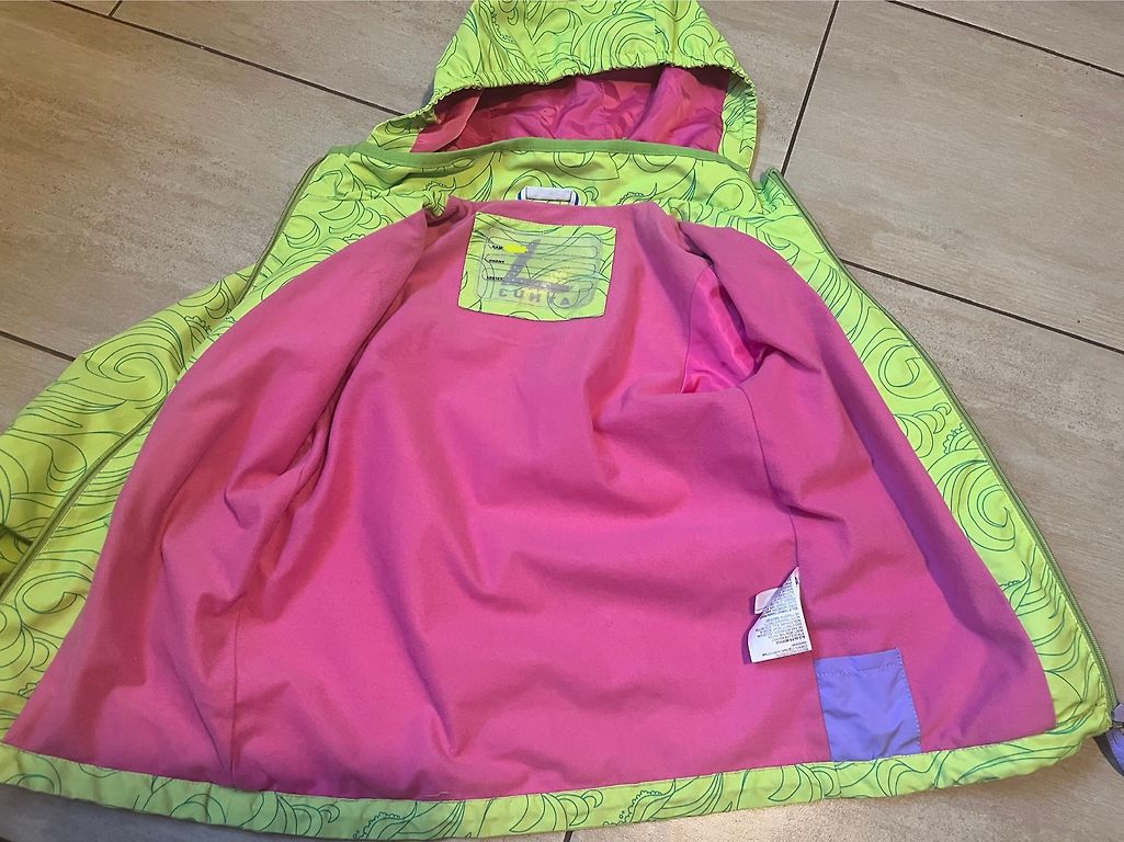 Skaistā tumši zaļā krāsā, rāvējslēdzis ir kārtībā.