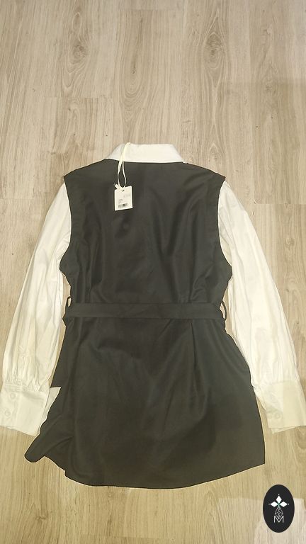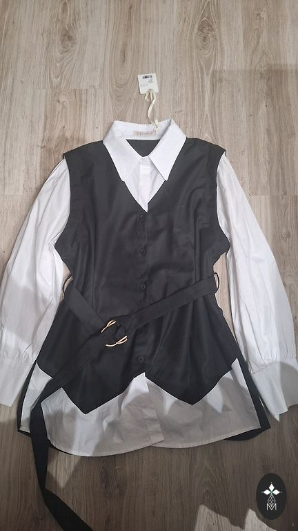 Graži trumpa palaidinė. Spalva yra šviesiai mėlyna su balta juostele - kaip internetinėse nuotraukose. Dydis nurodytas XL - manau, geriau vis dėlto bus L.