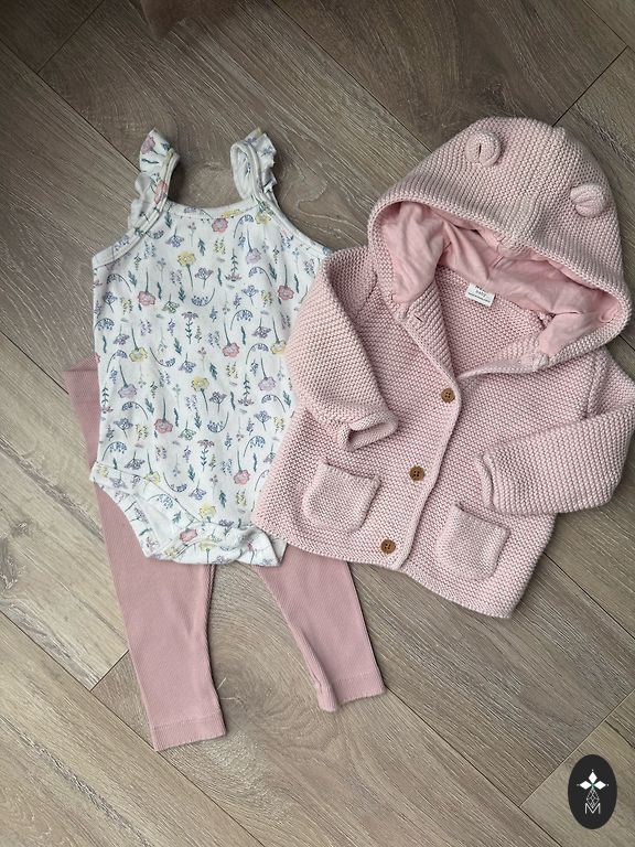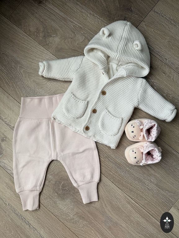 Piper&Podie suknelė su skrybėle. 3–6 mėnesiai. Šilta striukė su pamušalu 68–74 cm. Šviesiai rožinė spalva. Įsigyta TKMAXX.