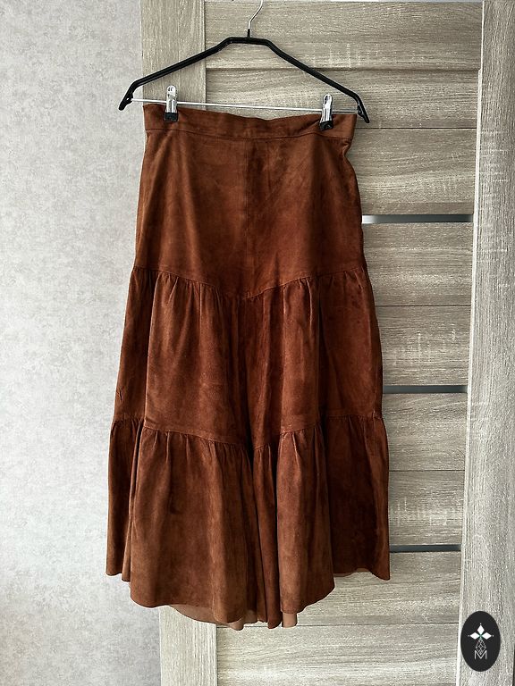 Uus, viskoosist valmistatud, lõdva lõikega seelik kõrge vöökohaga (küljel tõmblukk). Suurus M, kuid sobib ka suurusele S. Taljeümbermõõt: 76 cm, puusade ümbermõõt: 106–108 cm, seeliku pikkus taljest: 84 cm. Saadan selle Omniva või DPD-ga teie kulul.
