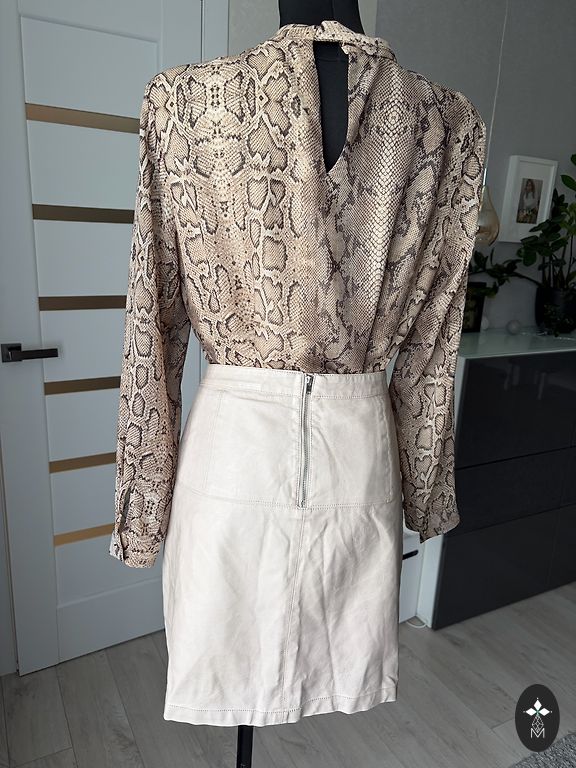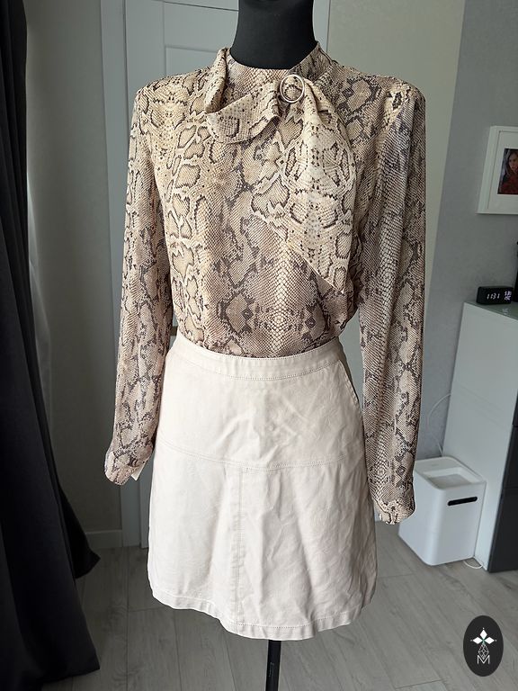 38 EU. 30% cotton, 65% polyester, 5% elastane. Worn a few times. 75-76 cm waist, 96 cm hips, 56 cm length with belt. With lining, zipper at the back, slit at the back. Turkish brand.