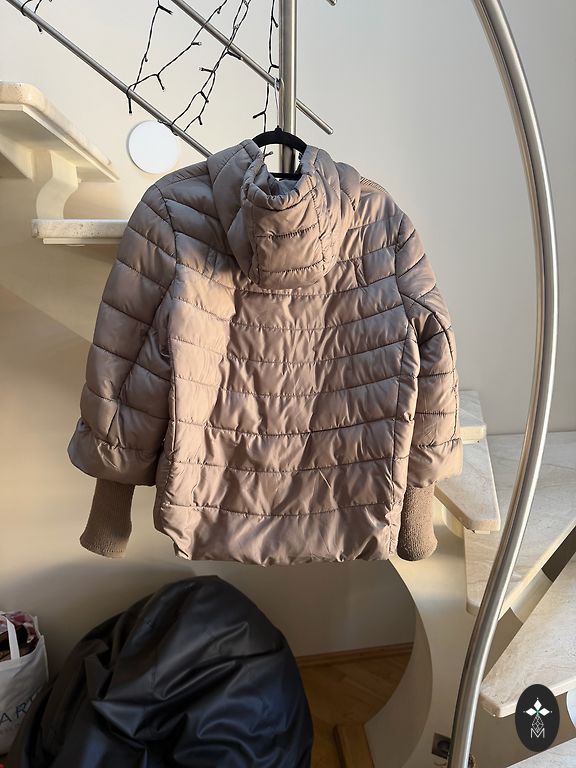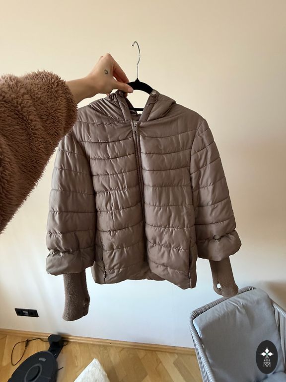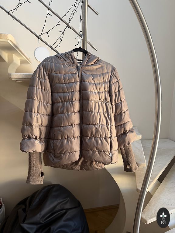 Ādas jaka, apšūta ar šinšillu trušu kažokādu.