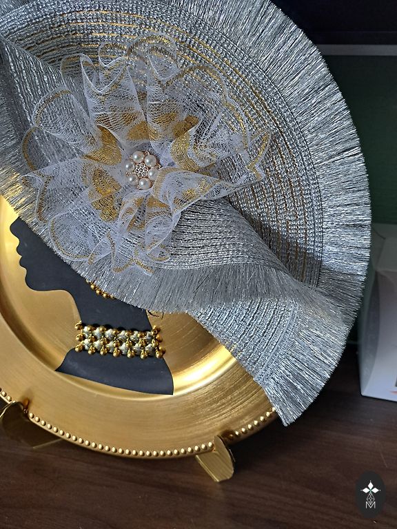 Zelta krāsas dekoratīvs spainītis/puķu podiņš un kaltēti rožu ziedi.