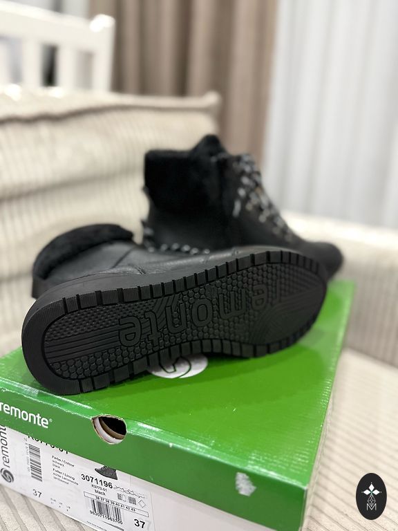 Ar biezo zoli, un kārtīgām rievām lai labi noturētos uz apledojušām ielām. Ādas puszābaki, ļoti kvalitatīvi un ir vieglāki nekā izskatās bildē