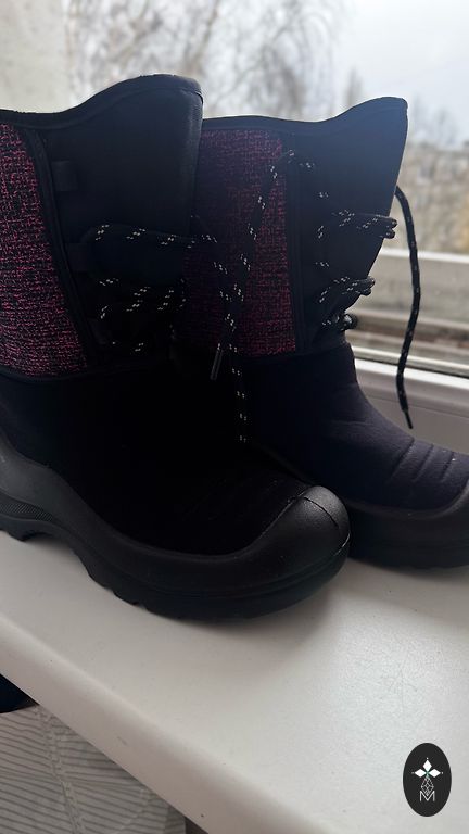 Kietos žiemos batai. Vidinė padas 22,5 cm (maždaug 21 cm vaiko pėdai). Lengvai užmaunami, lengvai užsegami. Nauji batai.