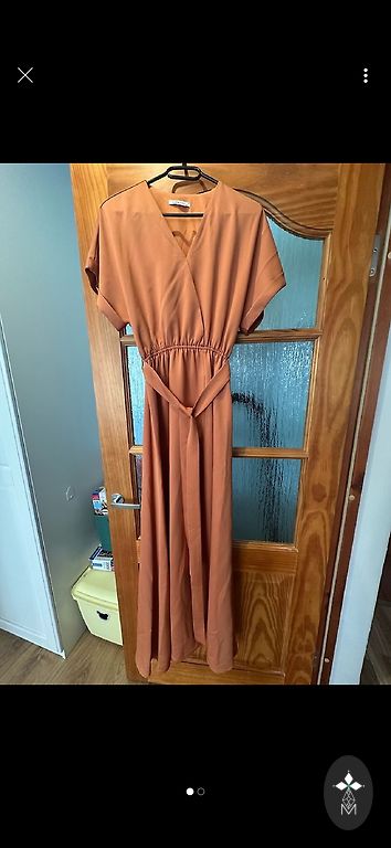 The costume is even suitable for a bride! šDense, well-draping fabric. Soft peach color. The skirt has an underskirt. Skirt waist 70-72 cm, length 105-107 cm. The corset is adjustable (can be tightened) and fits size S/M. (Size 46). Each part can also be worn separately. The only defect is that the corset has a damaged zipper and a torn tongue, which can be easily replaced.