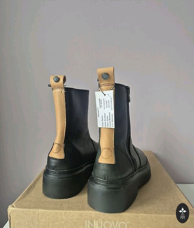 Кожанные полусапожки с текстильной вставкой