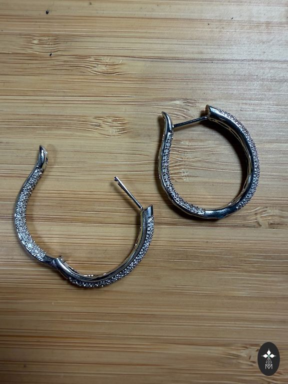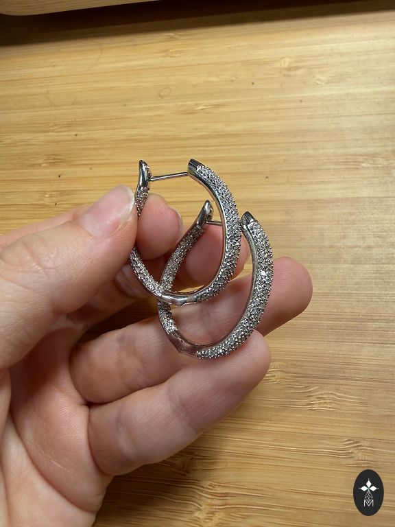 Серьги из серебра 925 пробы, есть заводской штамп на изделии. Очень красиво смотрятся в живую. Почти не ношеные. Не темнеют, есть специальное покрытие. Общий вес 6 грамм, камень цирконий. Покупали за 120 евро.