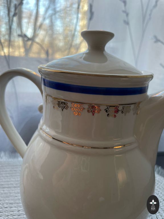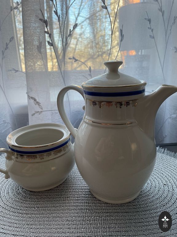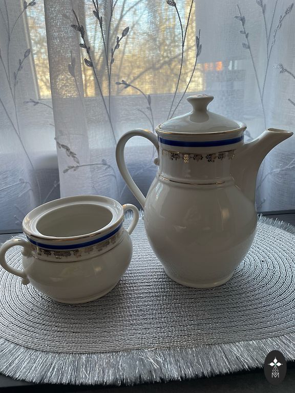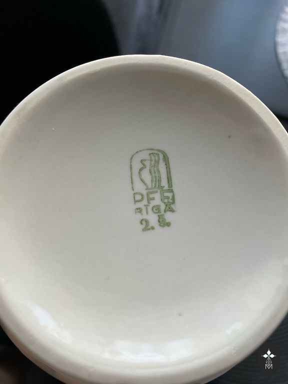 Cukrinės dangtelis. Pagrindo skersmuo 6 cm. Be įtrūkimų ar įskilimų, yra aukso praradimas ir glazūros trūkumas viršuje.