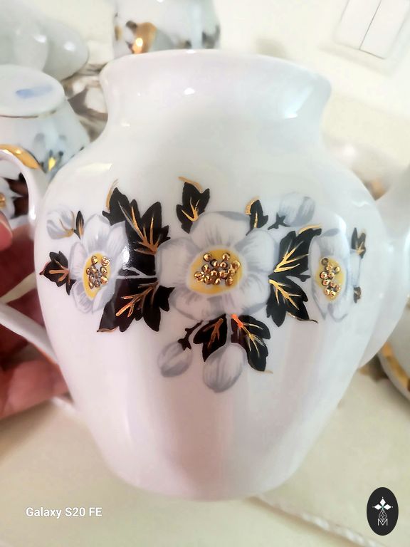 Kaunis stiliseeritud liblikate ja kullaga kohviserviis AIJA-1. Sinised templid. Serviis on tootmiskastist välja võetud. Uus ja kasutamata serviis. Kasutamise märke pole. Suurepärane seisukord.