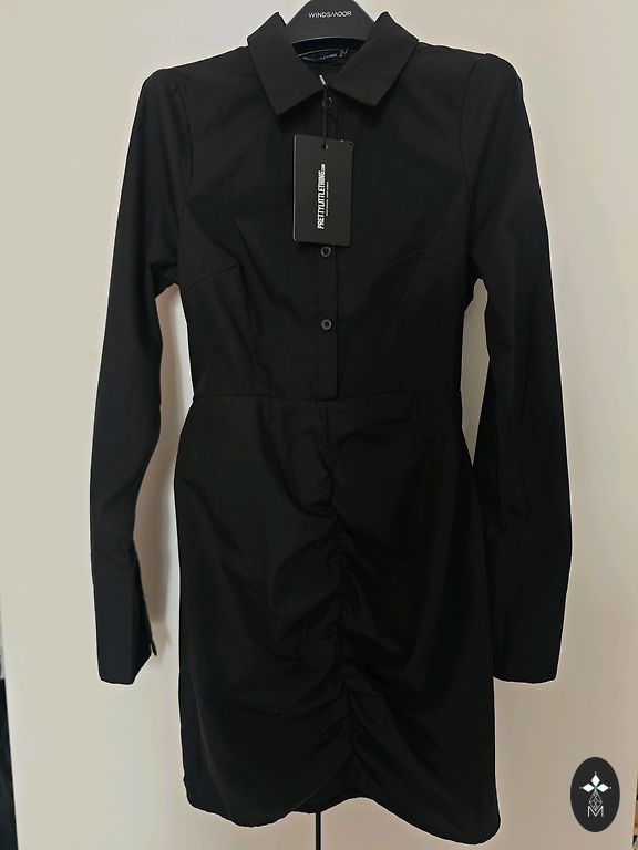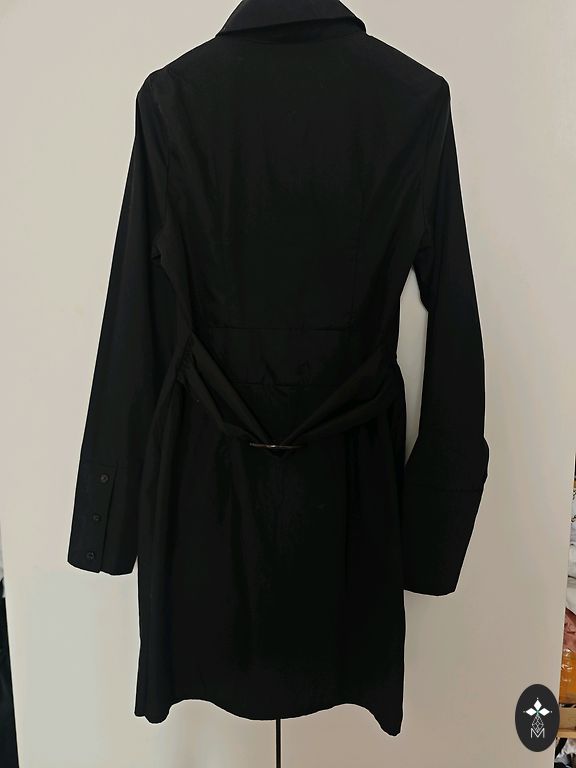 Черное платье DKNY. Хлопковая ткань. Невидимая застежка спереди. Будет отлично смотреться с ремнем. Общая длина от плеч 100 см. Разрезы по бокам 15 см. Ширина в области бедер 50 см. Длинные рукава. Размер XS.
