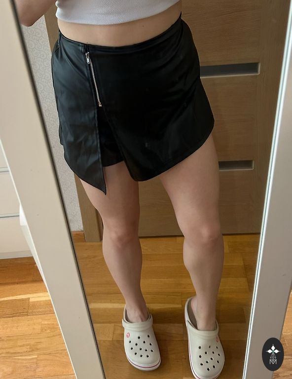 & Other Stories - comfortable mini skirt in a wrap style, looks great on the figure. Made from thick material, slightly stretchy. Length - 48 cm, waist - 43 cm, hips - 48 cm. Composition: 67% viscose, 29% polyamide, 5% elastane.