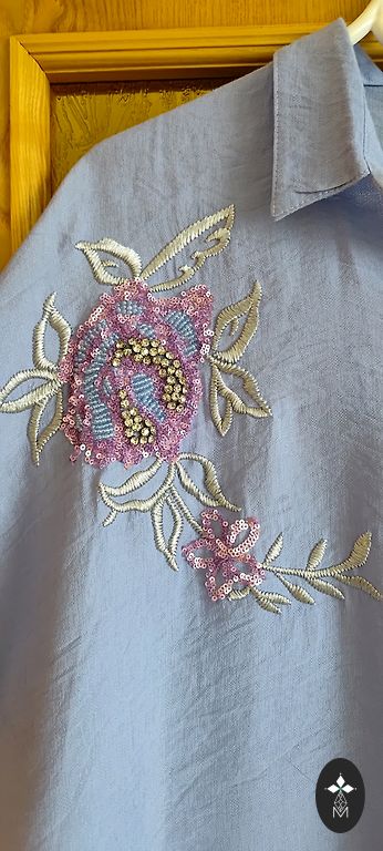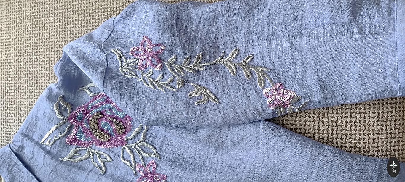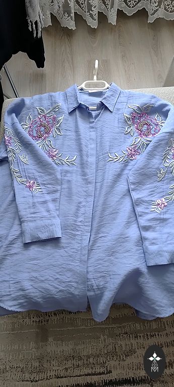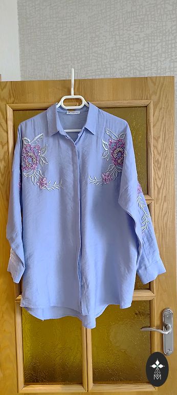 Skaista blūze košā krāsā, volāni piedurkņu galos, ir krūšu iešuves, audums viegls, necaurspīdīgs, labi derēs zem jakām, žaketēm. Krūtīs 67cmx2, gurnos 67cmx2, piedurknes 33 cm, garums 76cm. Izsūtu ar Omnivu, sūtīšanu sedz pircējs, klātienē netiekos.