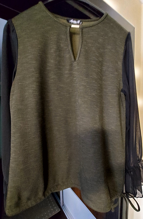 Ražots Latvijā " Jeļena plus". Izmērs uz XL. Brīvs piegriezums. Kimono tipa. Nedaudz caurspīdīga. Piedurkne piesedz pleca augšdaļu. Cenā iekļauta piegāde.