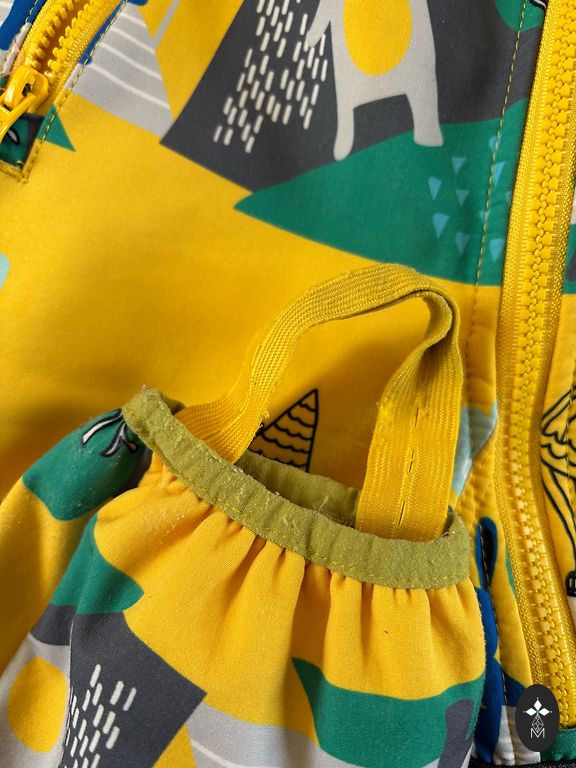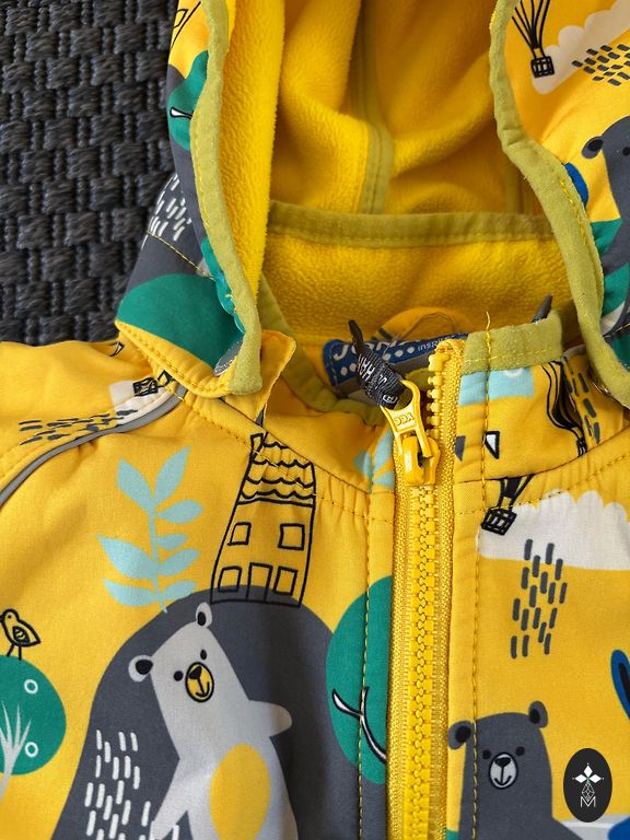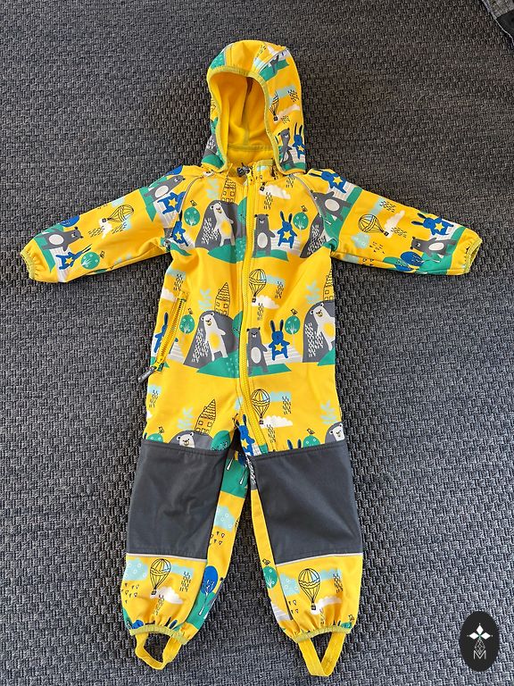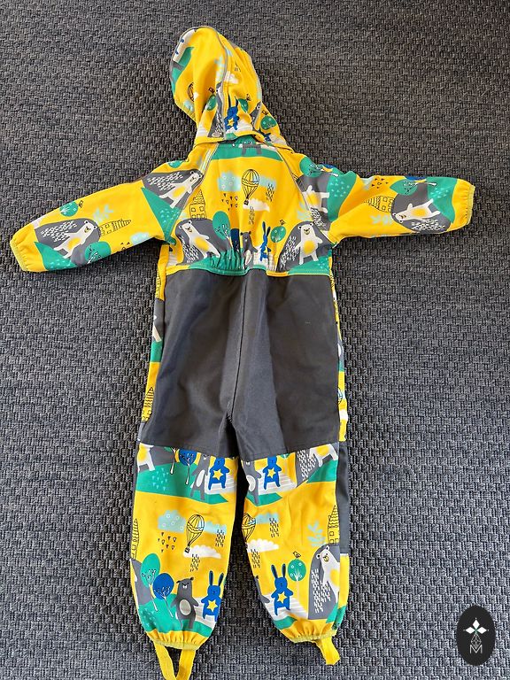 Plonas pavasario/rudens kombinezonas, atsparus vandeniui ir vėjui. Kombinezonas yra naujas, tik pamatuotas, kad suprasti, jog neatitinka dydžio. Dydis nurodytas 98, bet atitinka 92. Kombinezono ilgis nuo peties iki apačios yra 81 cm.