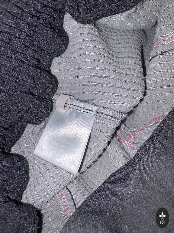 Kombinezonas su kišenėmis, elastinės juostos nukirptos, medžiaga yra tamsesnė ant dugno.