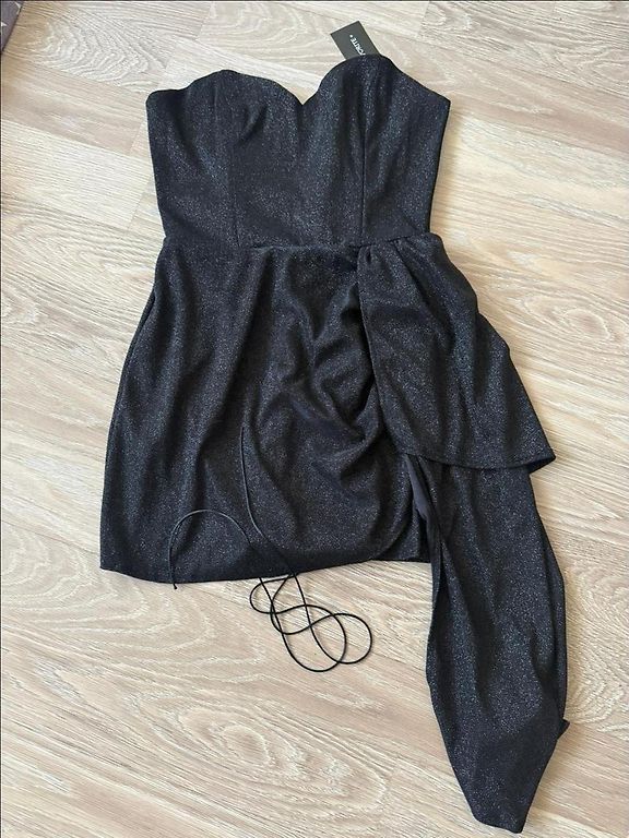 Īsā kleita ar wrap arround stila piegriezumu, maigi apjomīgām piedurknēm, V veida izgriezumu, no ļoti mīksta auduma. Uzvilkta 1 reizi uz pasākumu. Aktuāla, uz augumu der superīgi.