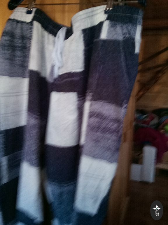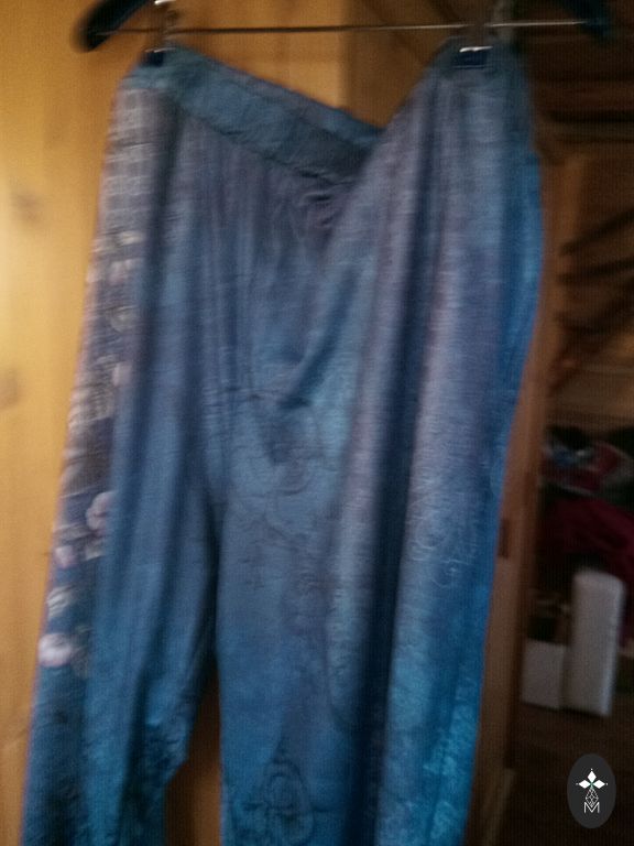 Visiškai naujos. Linas + medvilnė. Plonos ir lengvos (nepermatomos). Juosmuo reguliuojamas raišteliu. Tinka tiek L, tiek XXL dydžiui. Juosmuo – 48×2. Šlaunys – 66×2. Ilgis – 97,5-71. Aukšta talija ~32. Kelnės plotis – 28×2. Tiesus kirpimas. Tinka 158-165 cm ūgio moterims.