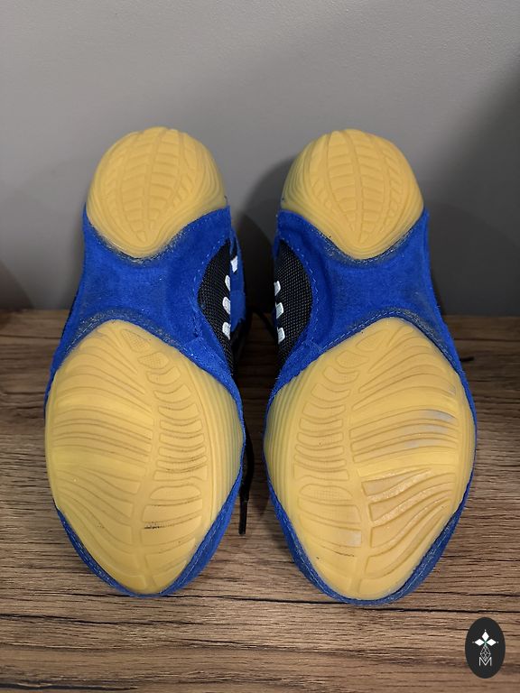 The son grew up, the sneakers became too small. There are small cracks on the tongue (visible in the last picture), which do not interfere with use. There are spare laces.