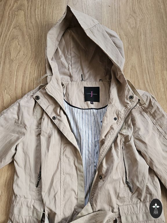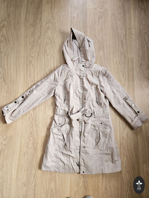 Nopirku šeit, neiedzīvojās manā garderobē. Trencītis ar dabīgās ādas apdari, bez oderes, viegls. Trencītim, kā jau iepriekšējā pārdevēja norādīja, no brūnās apmalītes iekšpusē pie apkaklītes daži punktiņi, valkājot nav pamanāmi. Garums pa muguras vidu 95 cm,