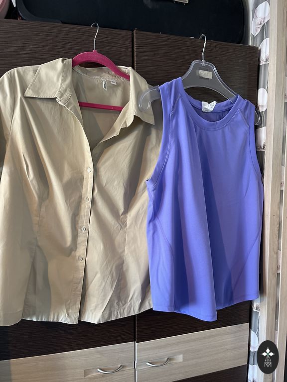 Beautiful set. DE size 42 L/XL. Sleeve for the jacket 3/4. Top width 2x53cm, length 58cm (unstretched), back white.