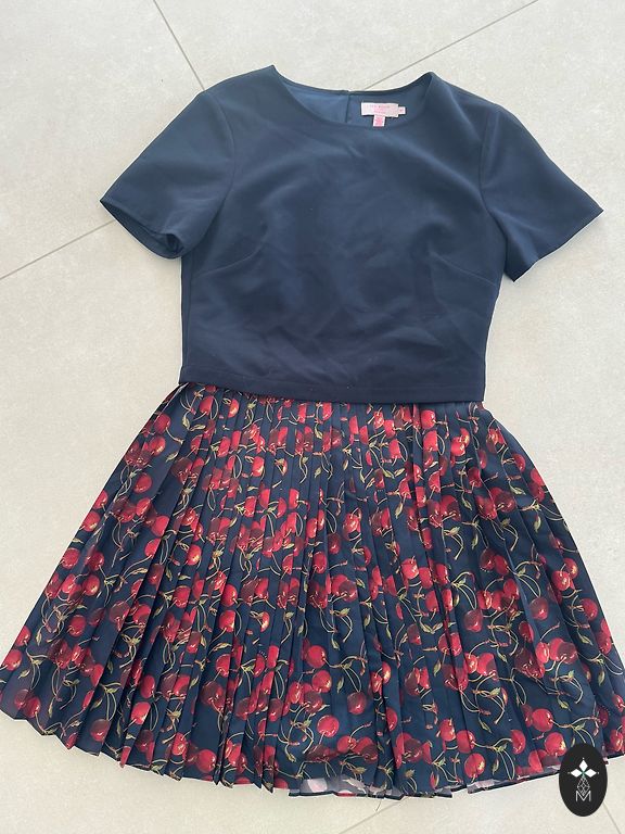 Kleita ir tumši zila. Ir satīna odere. Garums no jostasvietas ir 53 cm, roku izgriezuma apkārtmērs ir 39-40 × 2 cm, vidukļa apkārtmērs ir 36 × 2 cm. Tā ļoti skaisti izskatās uz figūras.