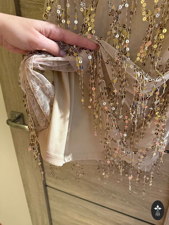 Gatsby stiliaus suknelė su kutais.